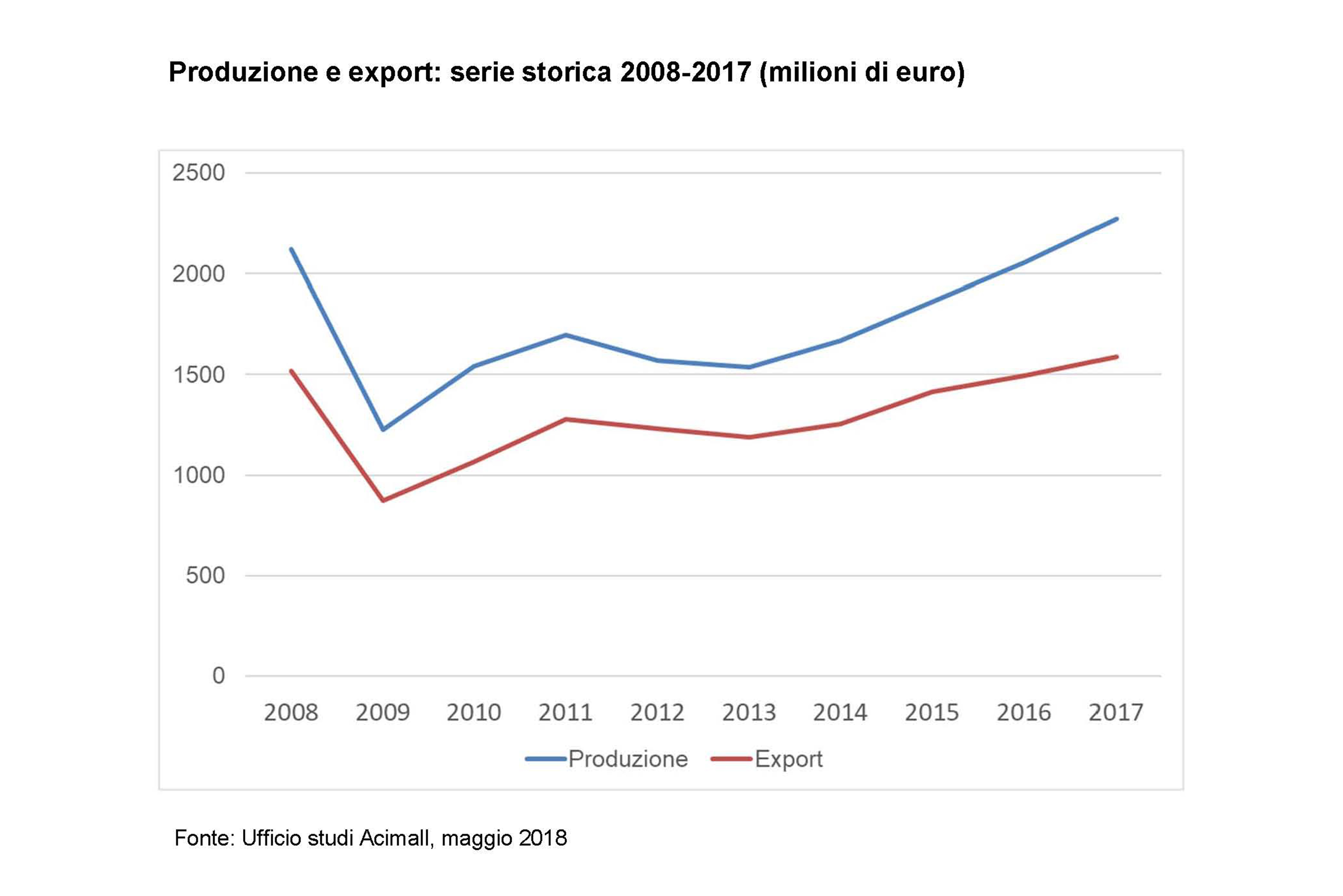 GRAFICO PRODUZIONE ED EXPORT ITALIA 2008-2017